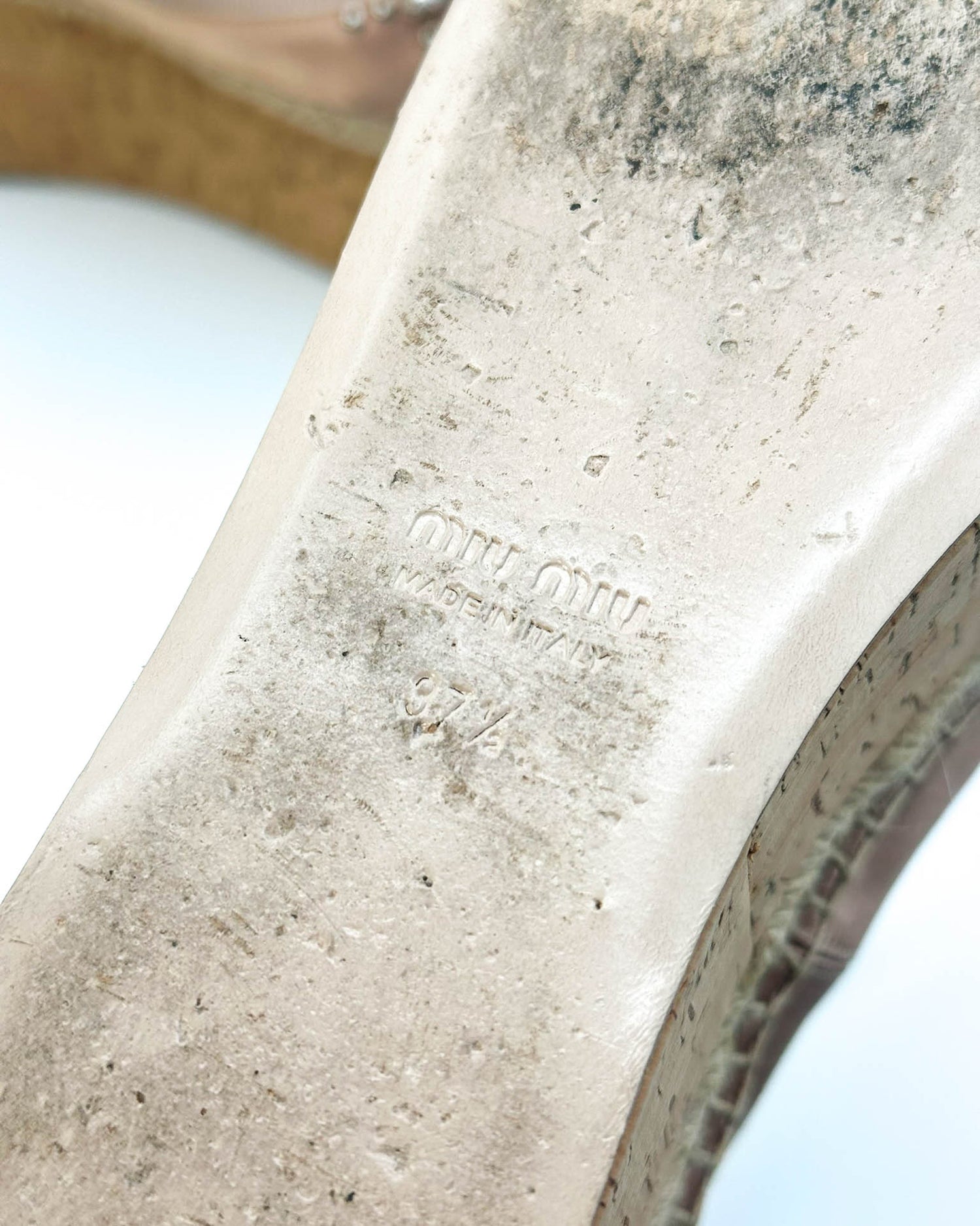 Description: Miu Miu bejewelled platform espadrilles with optional leg ribbons